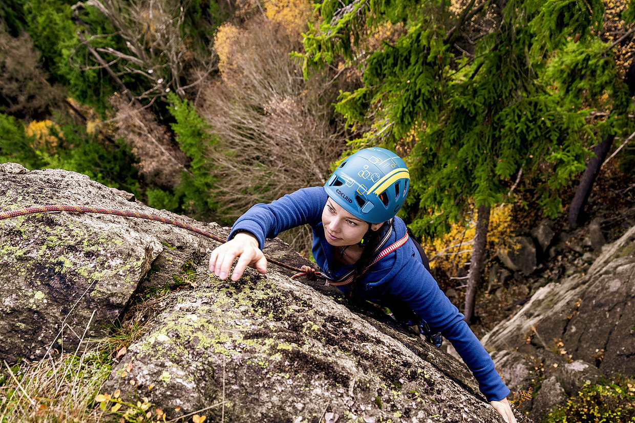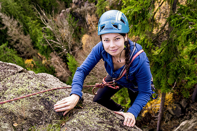 „Beim Klettern bekomme ich den Kopf frei – Klettern erdet einen. Ich habe in der Halle in Pockau angefangen, heute klettere ich gern drinnen und draußen. In der Halle geht es mir mehr um Leistung, darum, besser zu werden. Draußen genieße ich das Naturerlebnis, die frische Luft, das Abenteuer und vor allem die Gemeinsamkeit.“