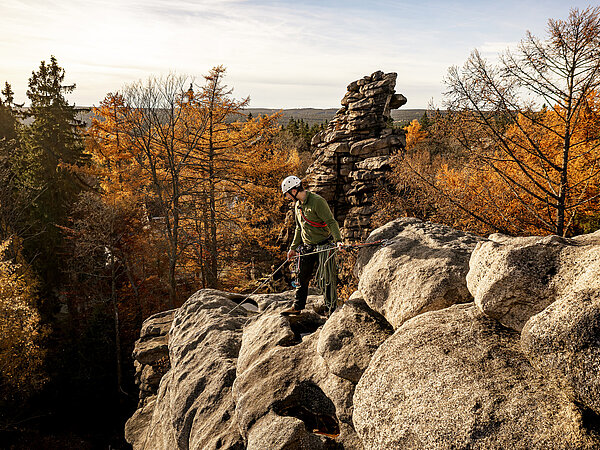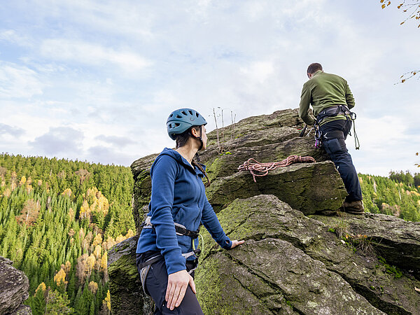 Felsenliebe und Nervenkitzel im Erzgebirge. Was Hobbykletterer begeistert zeigt der große Kletterfelsentest. Achtung: lädt zum Nachahmen ein.