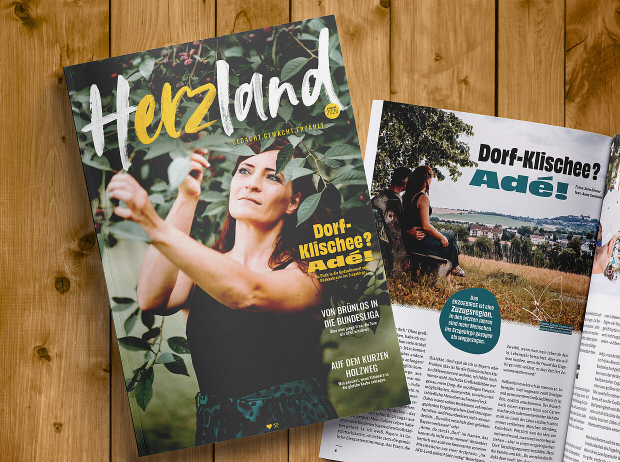 „Dorf-Klischee? Ade!“ heißt der Titel von Annes Geschichte. Es ist einer von 14 Beiträgen im Heft, das von Neuanfängen, Engagement und Menschen erzählt, die anpacken und das Erzgebirge gestalten und voranbringen. Denn im Erzgebirge wird getestet, gefriemelt und gemacht. Nicht nur Maschinen oder Produkte, sondern Ideen, Lebensentwürfe, Beziehungen. Und die eigene Zukunft. Diese Herzland-Ausgabe widmet sich all jenen, die sich auf ein Leben im Erzgebirge eingelassen haben.